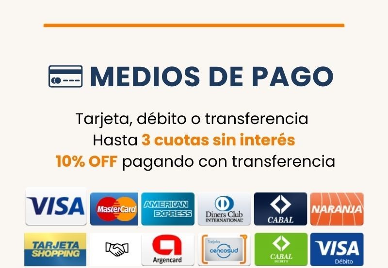 El descuento se aplicará sobre el precio del producto (sin envío) al elegir el medio de pago.